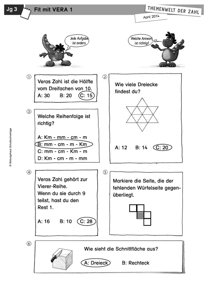 Themenwelt der Zahl: Fit mit VERA 1 - Lösung
