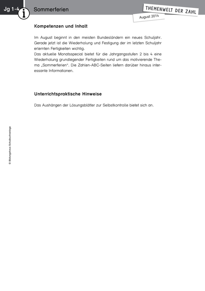 Themenwelt der Zahl: Sommerferien - Kommentar