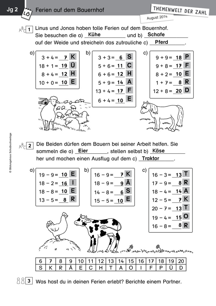 Themenwelt der Zahl: Sommerferien - Lösungen