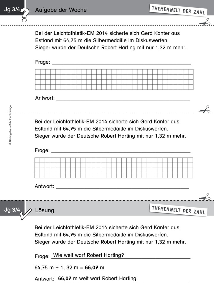 Rechnen mit Längen - Sachrechnen