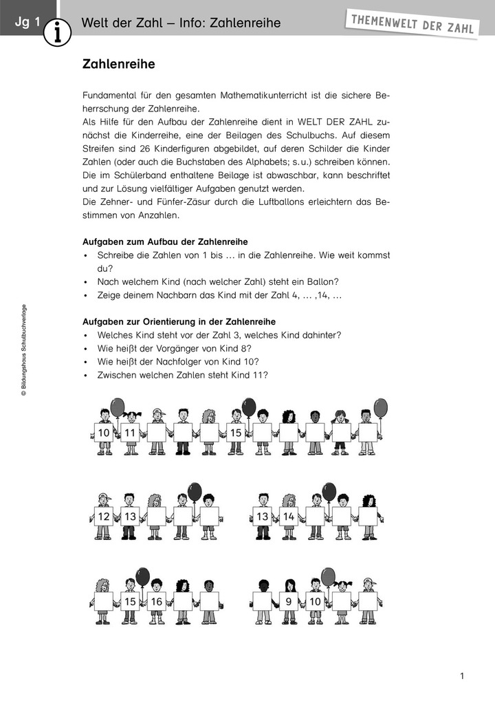 Welt der Zahl - Info: Zahlenreihe (Klasse 1)