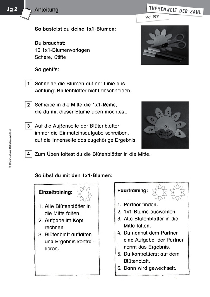 Themenwelt der Zahl: 1x1-Blumen - Kopiervorlagen