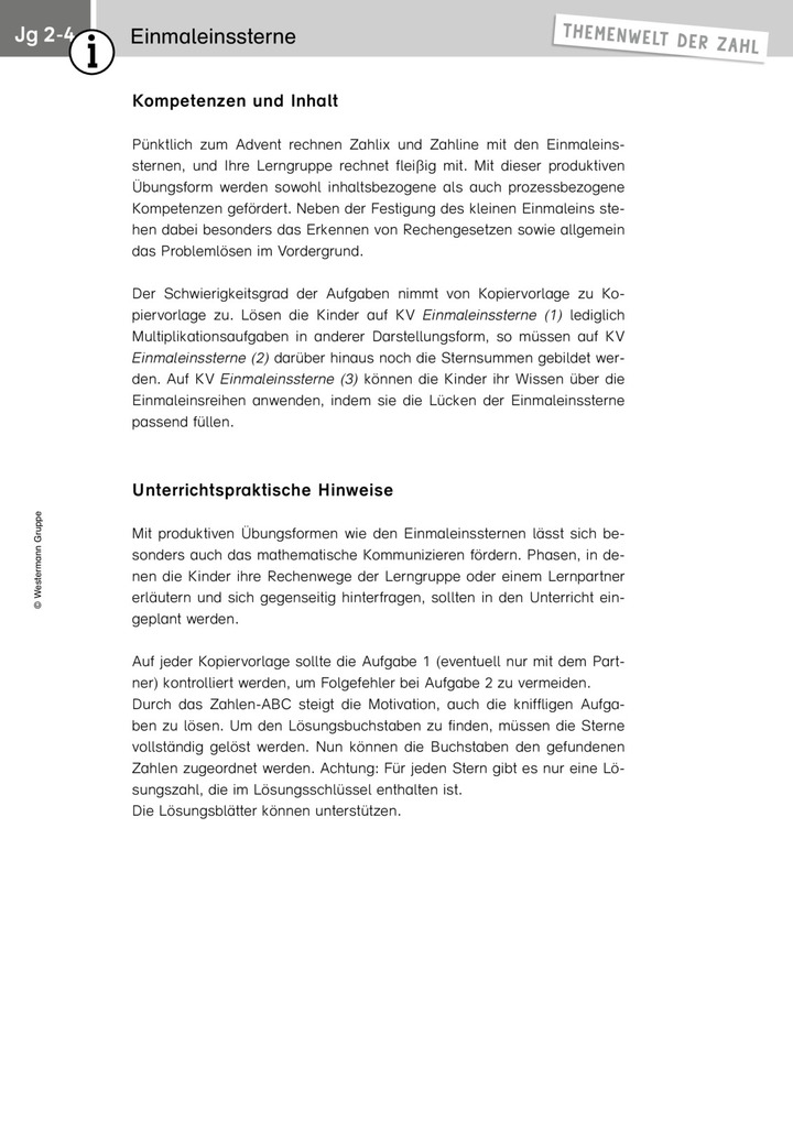Themenwelt der Zahl: Einmaleinssterne - Kommentar