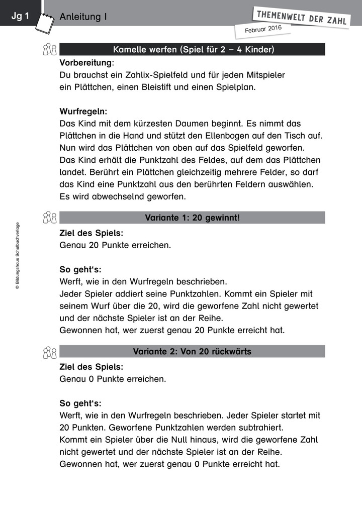 Themenwelt der Zahl: Kamelle werfen - Kopiervorlagen