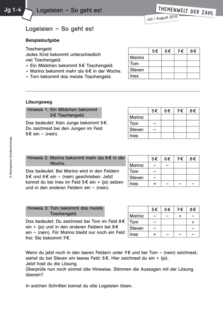 Themenwelt der Zahl: Sommer-Logeleien - Kopiervorlagen