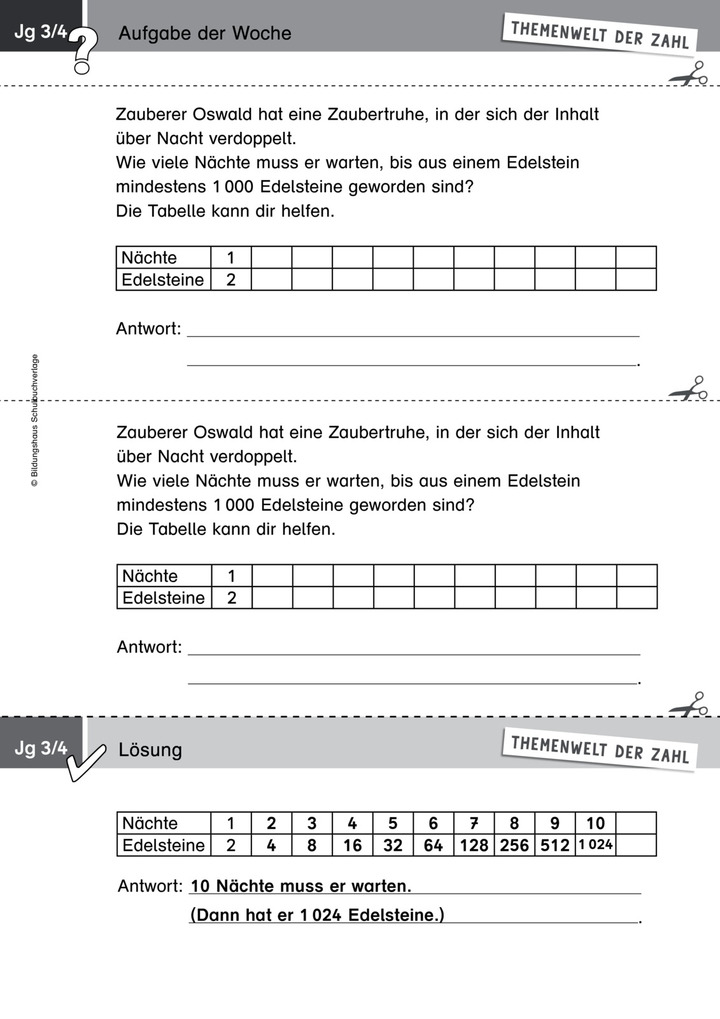 Zahlen und Operationen: wiederholtes Verdoppeln (Klasse 3/4)