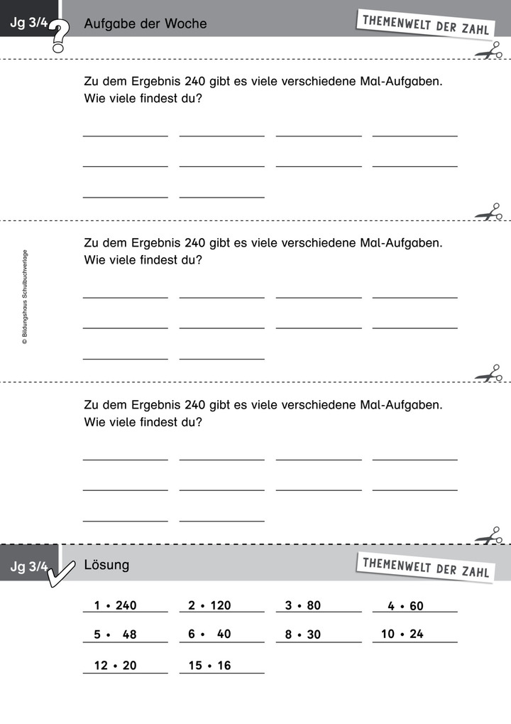Zahlen und Operationen: Multiplizieren bis 1000 (Aufgaben zu einem vorgegebenen Ergebnis bilden)