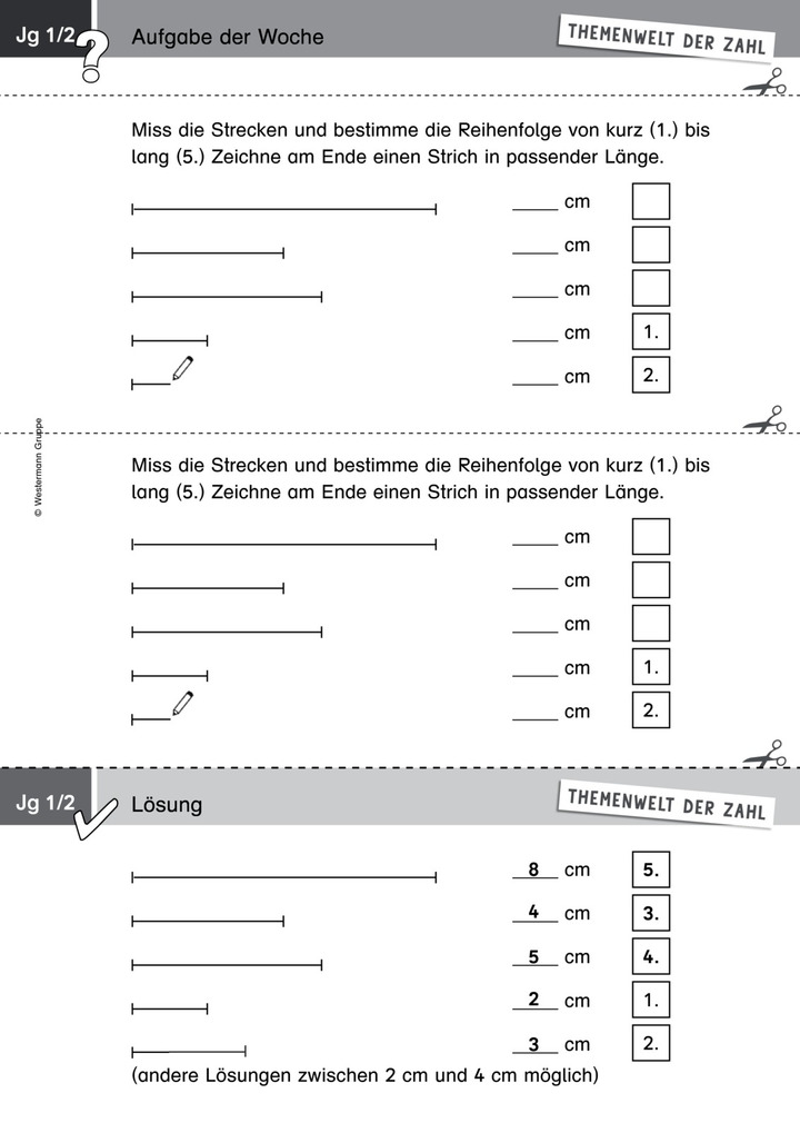 Produktabbildung zu Themenwelt der Zahl: Aufgabe der Woche 27/2017 - Größen und Messen: Längen - Strecken messen, vergleichen und ordnen (Klasse 1/2)