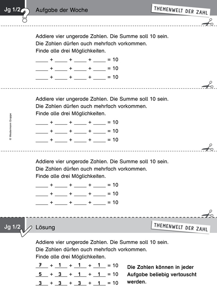 Produktabbildung zu Themenwelt der Zahl: Aufgabe der Woche 45/2017 - Zahlen und Operationen: Additionsaufgaben finden unter Beachtung von Zahleigenschaften (Klasse 1/2)