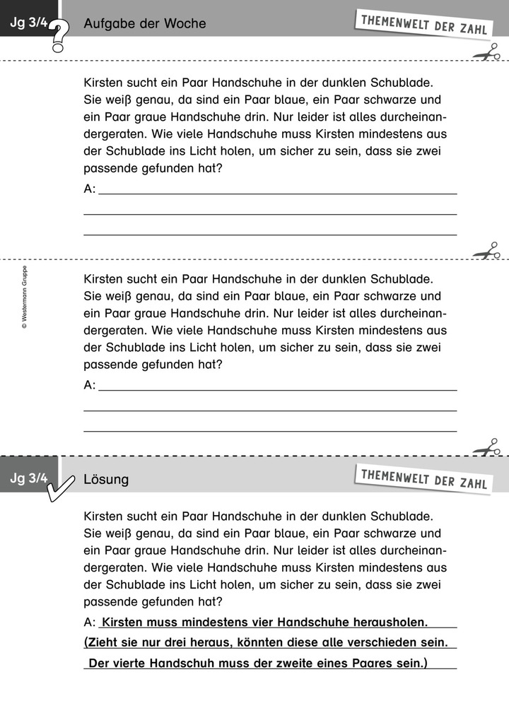 Themenwelt der Zahl: Aufgabe der Woche 04/2018 - Daten, Häufigkeit, Wahrscheinlichkeit: problemhaltige Sachaufgabe zu einem Zufallsexperiment (Klasse 3/4)