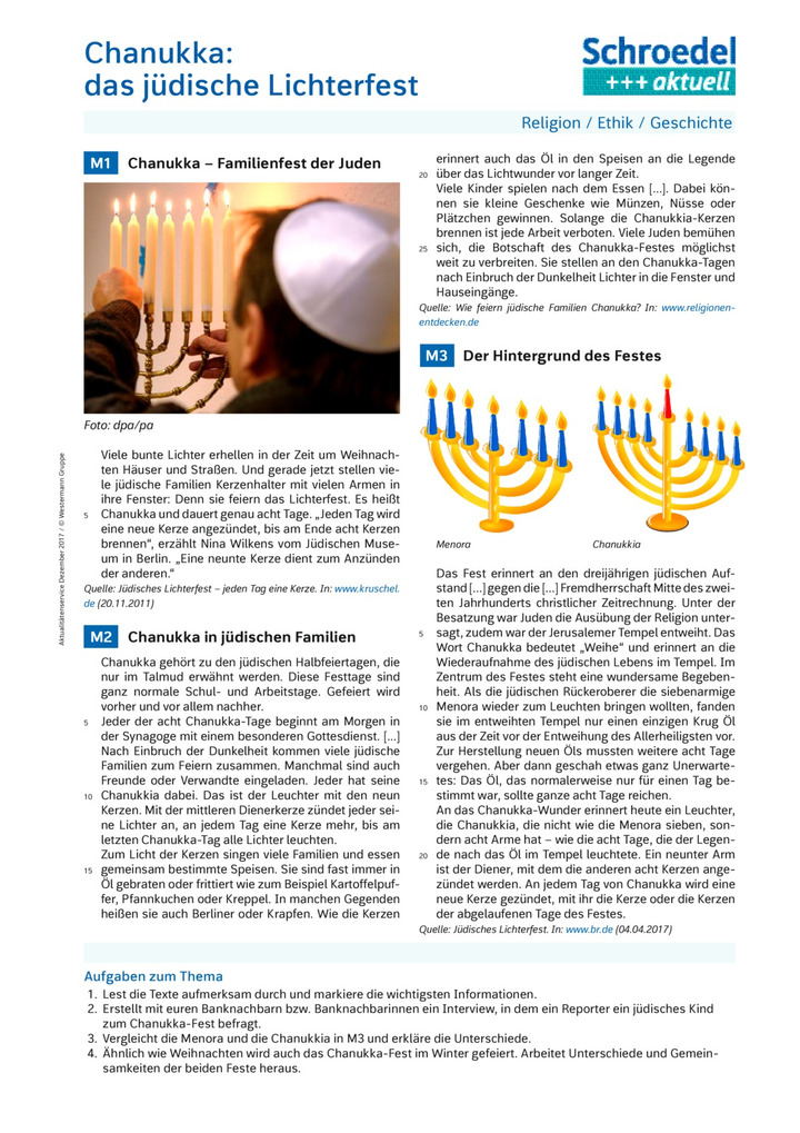 Chanukka: das jüdische Lichterfest - Religion / Ethik / Geschichte ab Klasse 7