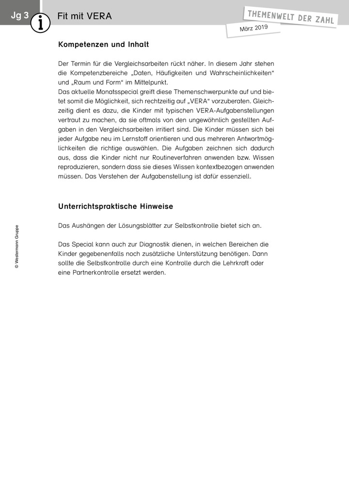 Produktabbildung zu Themenwelt der Zahl: VERA - Kommentar - Monatsspecial März 2019
