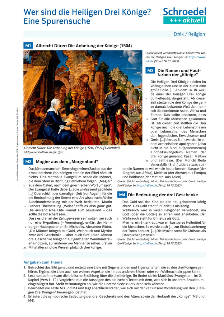 Wer sind die Heiligen Drei Könige? Eine Spurensuche - Ethik / Religion ab Klasse 7