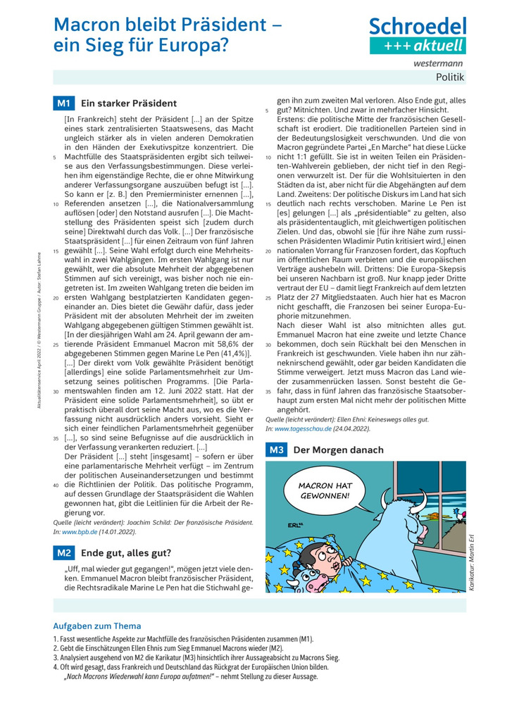 Macron bleibt Präsident - ein Sieg für Europa? - Politik ab Klasse 9
