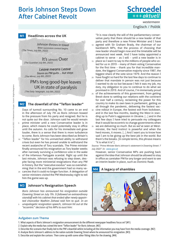 Boris Johnson Steps Down After Cabinet Revolt - Englisch / Politik ab Klasse 9