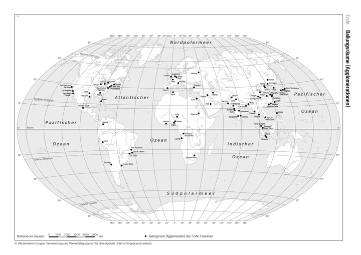 Metropolen, stumme Karte, Städte, Arbeitskarte, Agglomerationen, Verdichtungsräume, Erde, Kopierkarte