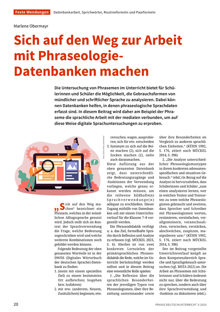 Die Untersuchung von Phrasemen im Unterricht bietet für Schülerinnen und Schüler die Möglichkeit, die Gebrauchsformen von