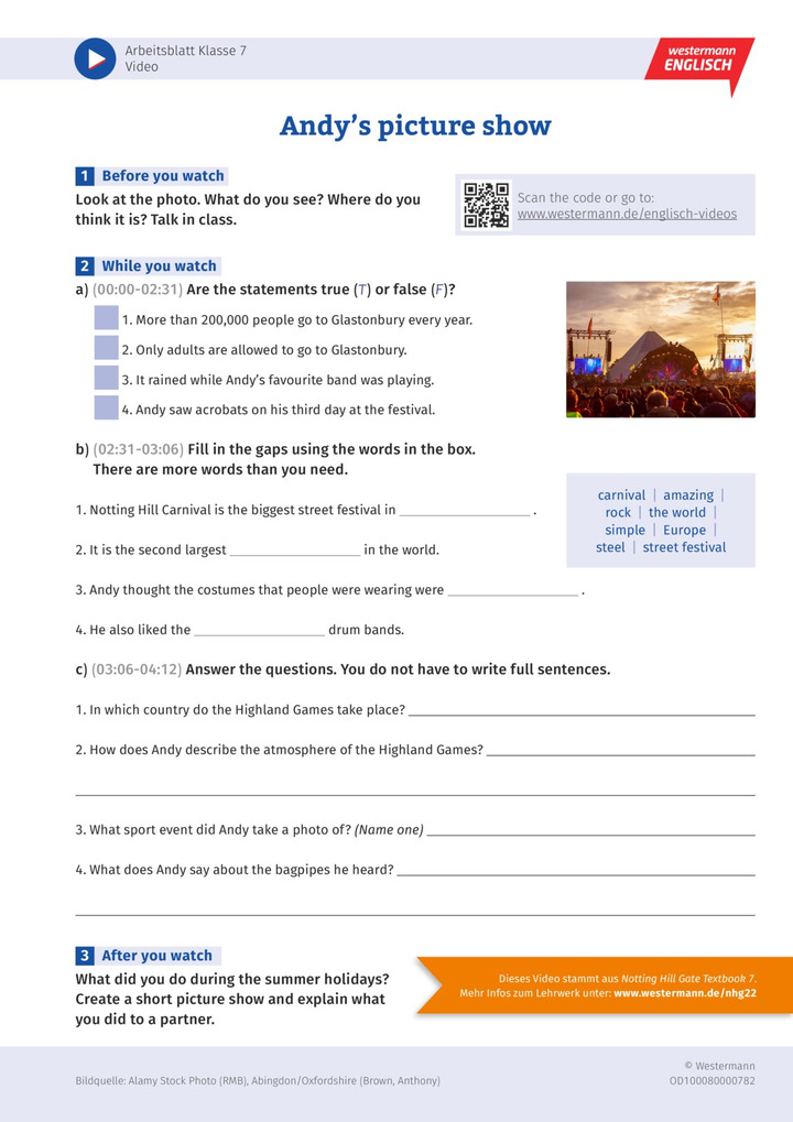 | Schlagworte | Video, Arbeitsblatt, Westermann Englisch, Festival, Festivals |