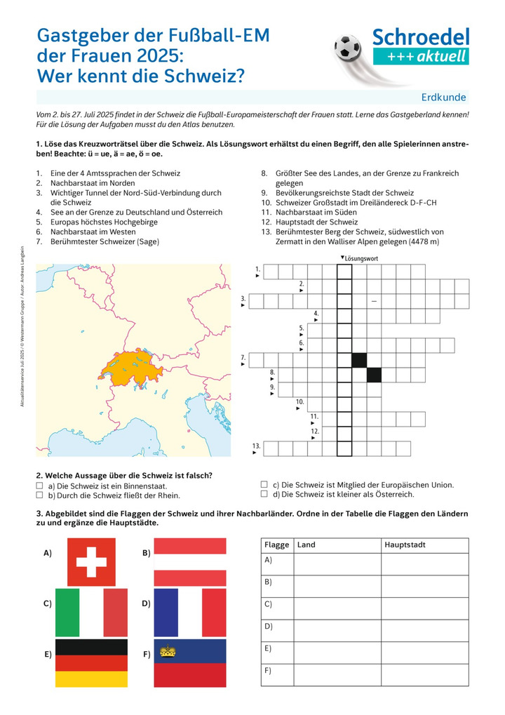 Gastgeber der Fußball-EM der Frauen 2025: Wer kennt die Schweiz? - Erdkunde ab Klasse 5