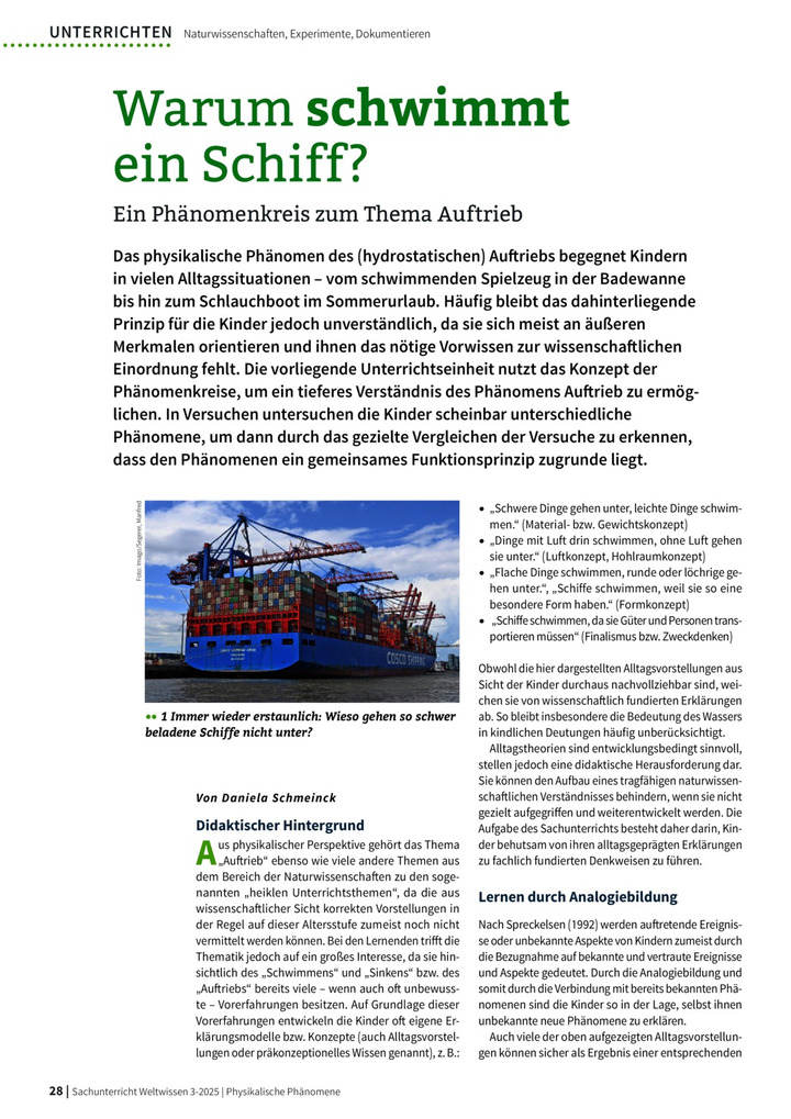 Warum schwimmt ein Schiff? Ein Phänomenkreis zum Thema Auftrieb