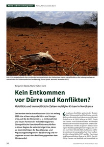 Der Norden Kenias durchlebte von 2021 bis Anfang 2023 eine schwerwiegende Dürre und Hungerkrise, auf die die Menschen u. a. mit bewährten und neuen Formen der Mobilität reagierten. Ethnopolitische Gewaltkonflikte verschärften in dieser Region die vielschichtige Krise, denn sie beeinträchtigen die Bewältigungs- und Anpassungsstrategien der Bevölkerung und verringerten so auch ihre Resilienz gegenüber dem Klimawandel.