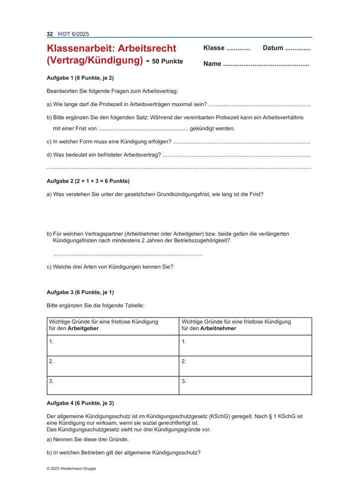 Klassenarbeit, Kündigung, Arbeitsrecht, Arbeitsvertrag