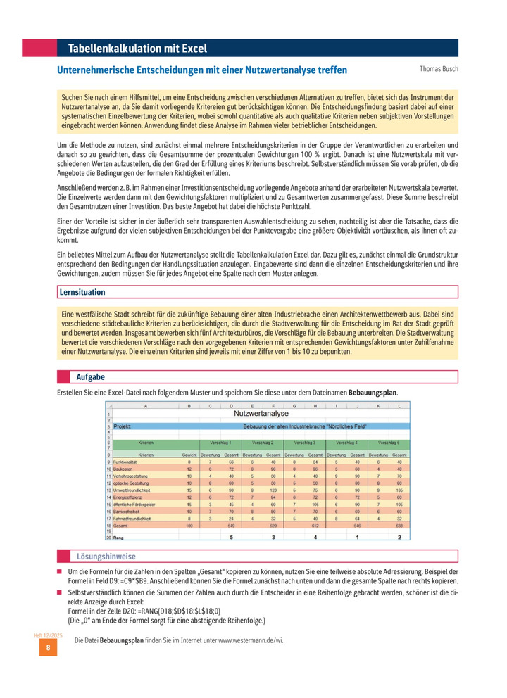 Unternehmerische Entscheidungen mit einer Nutzwertanalyse treffen Ausgabe 12/ 2025