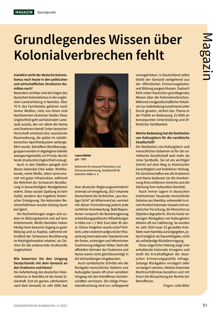 | Schlagworte | Restitution, Kolonialismus, Namibia |
