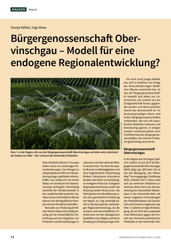 Bürgergenossenschaft Obervinschgau – Modell für eine endogene Regionalentwicklung?