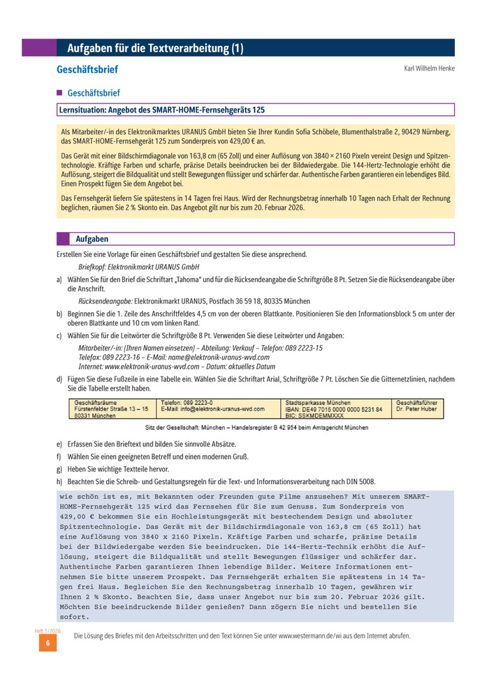 Geschäftsbrief - Textformatierung Ausgabe 01/ 2026