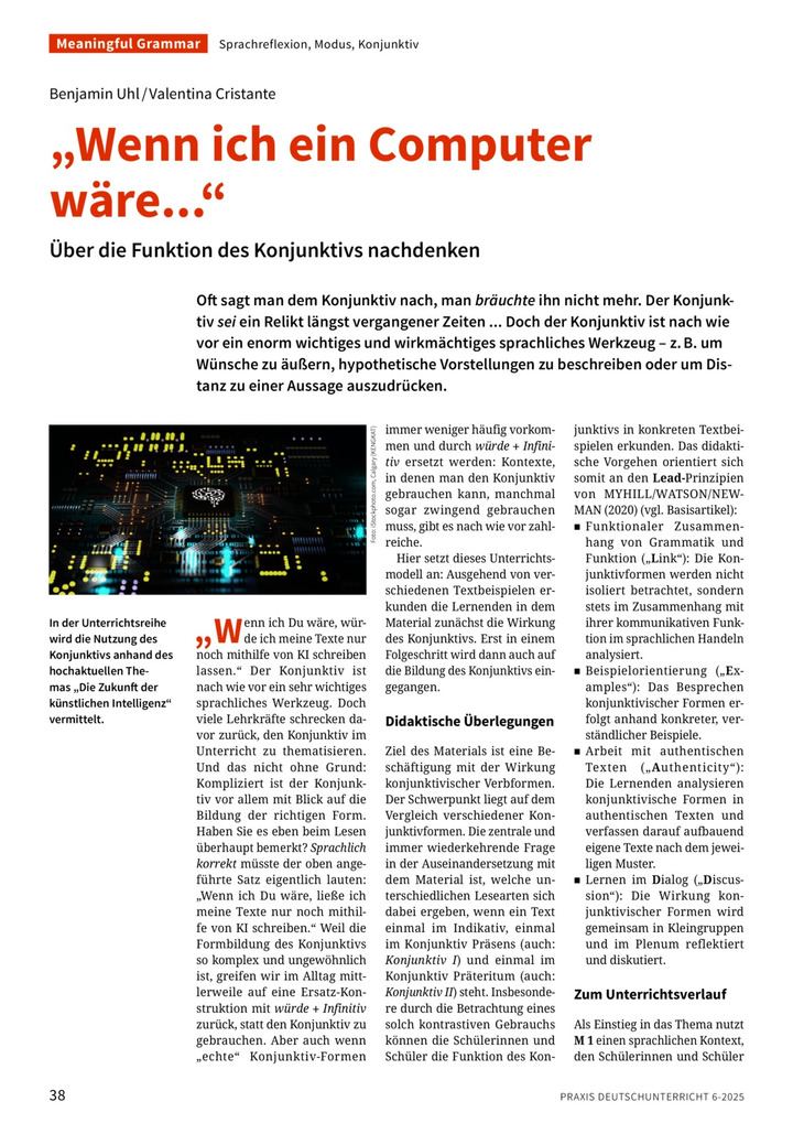 "Wenn ich ein Computer wäre ..." Über die Funktion des Konjunktivs nachdenken