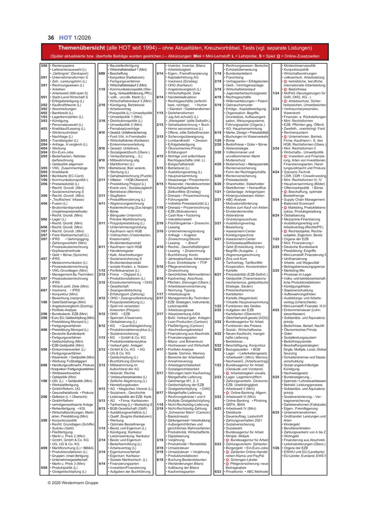 Themenübersicht (alle HOT seit 1994)