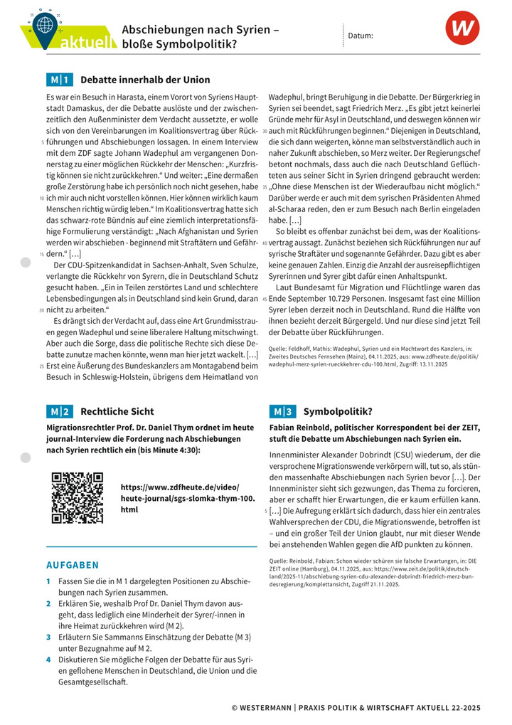 Abschiebungen nach Syrien: bloße Symbolpolitik? Praxis Politik & Wirtschaft aktuell 22/ 2025