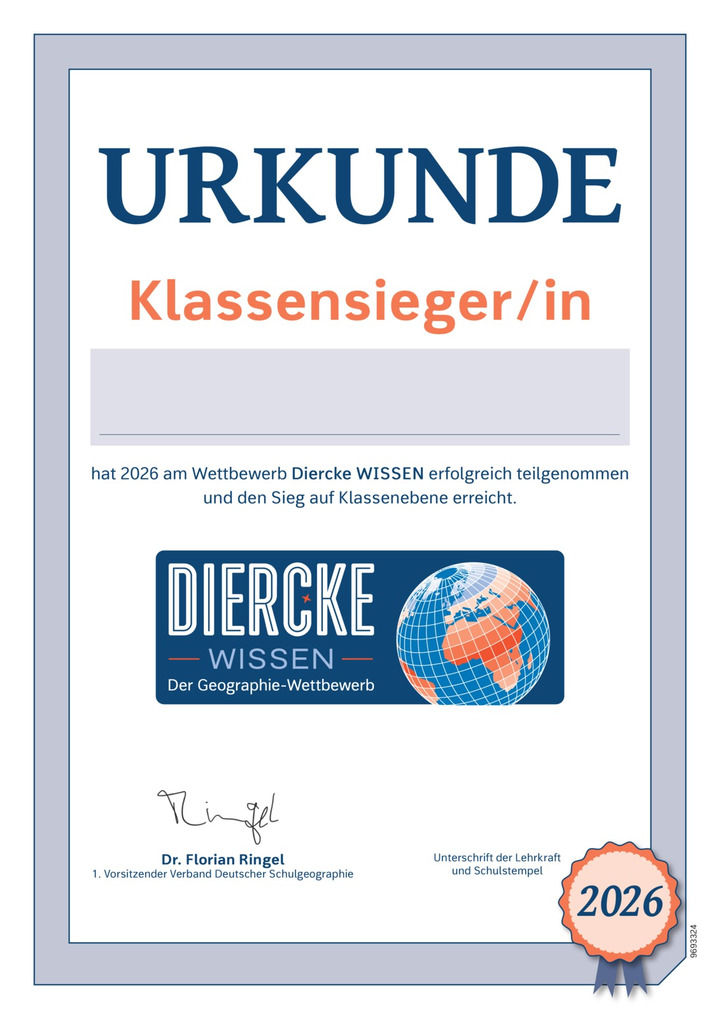 Produktabbildung zu Urkunde: Klassensieger/-in - Diercke WISSEN 2026