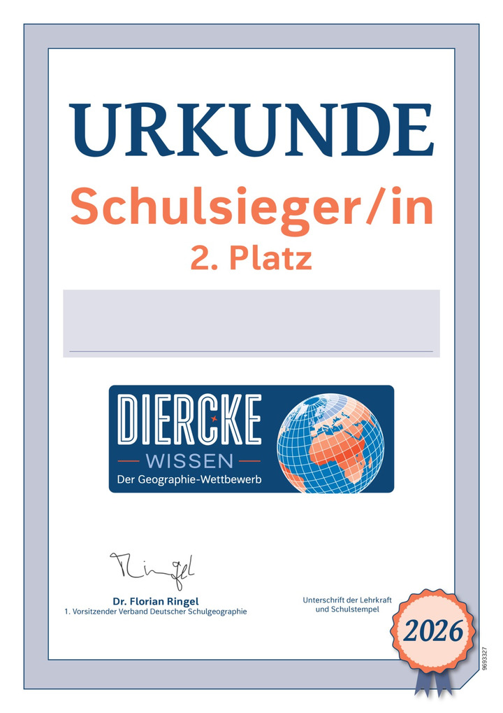 Produktabbildung zu Urkunde: Schulsieger/-in (2. Platz) - Diercke WISSEN 2026