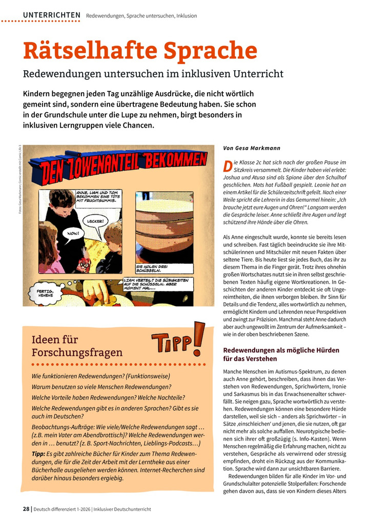 | Schlagworte | Comic, Forschungsfragen, Inklusion, Redewendungen, Sprache untersuchen |