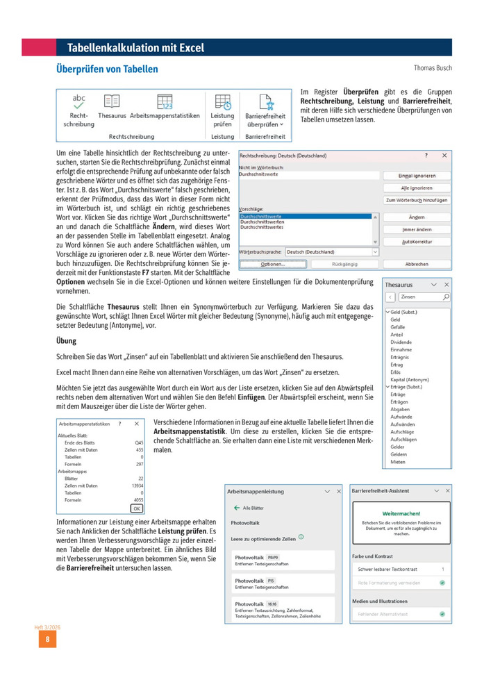 Gruppen Rechtschreibung, Leistung und Barrierefreiheit im Register -Überprüfen-, Tabellenkalkulation mit Excel: Überprüfen von Tabellen