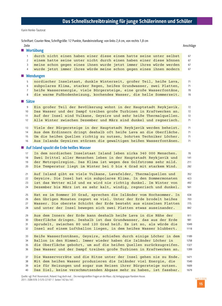 Schnellschreibtraining und 10 Minuten-Abschriften, Ausgabe 02/2026