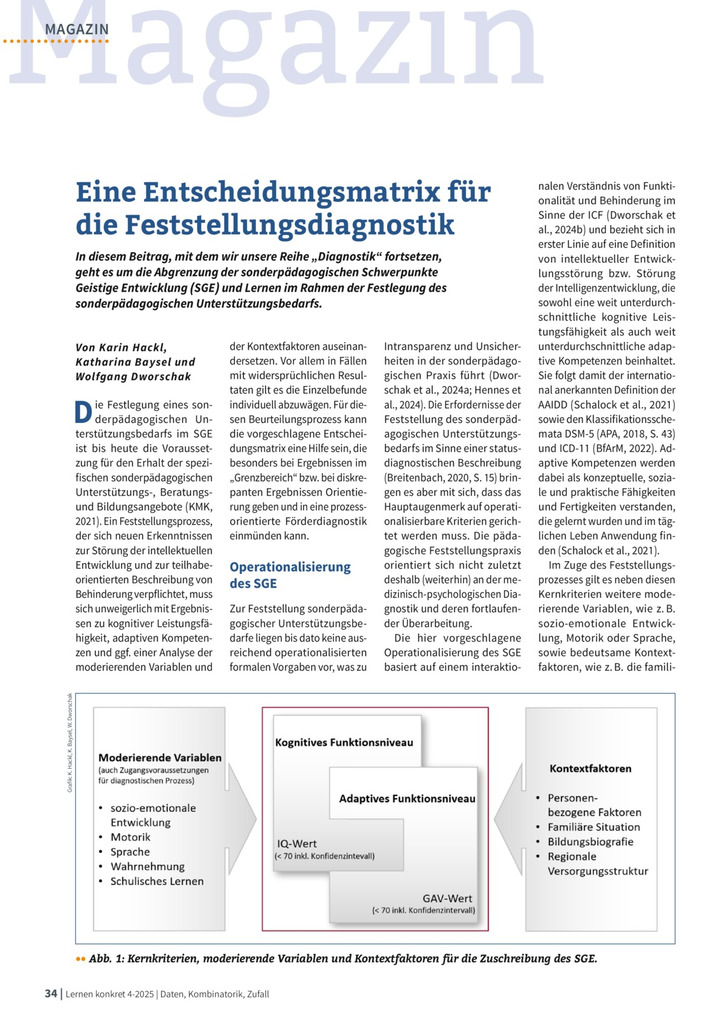 In diesem Beitrag, mit dem wir unsere Reihe "Diagnostik" fortsetzen, geht es um die Abgrenzung der sonderpädagogischen Schwerpunkte Geistige Entwicklung (SGE) und Lernen im Rahmen der Festlegung des sonderpädagogischen Unterstützungsbedarfs.