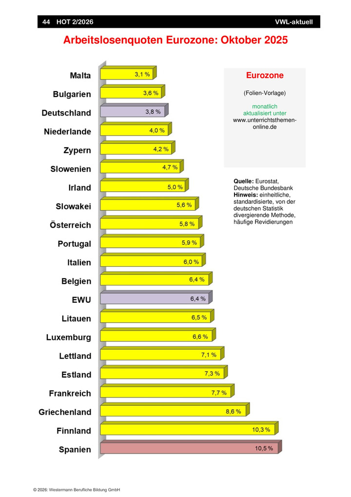 Deutsche Bundesbank, Volkswirtschaft, aktuell, EU, VWL, Arbeitslosenquote, Europa, Eurostat, Arbeitslosenquoten Eurozone, Eurozone