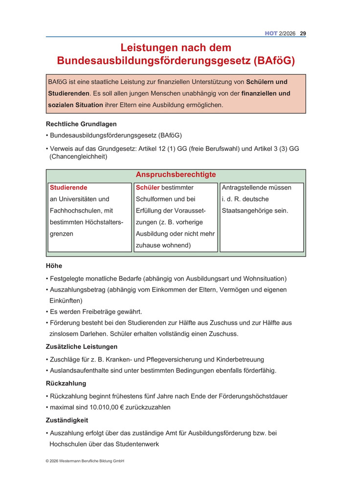 Leistungen nach dem Bundesausbildungsförderungsgesetz (BAföG)