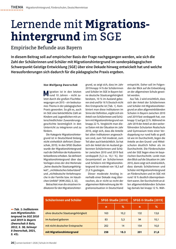 In diesem Beitrag soll auf empirischer Basis der Frage nachgegangen werden, wie sich die Zahl der Schülerinnen und Schüler mit Migrationshintergrund im sonderpädagogischen Schwerpunkt Geistige Entwicklung (SGE) über eine Dekade hinweg entwickelt hat und welche Herausforderungen sich dadurch für die pädagogische Praxis ergeben.
