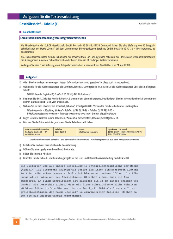 Geschäftsbrief - Tabelle Ausgabe 04/ 2026