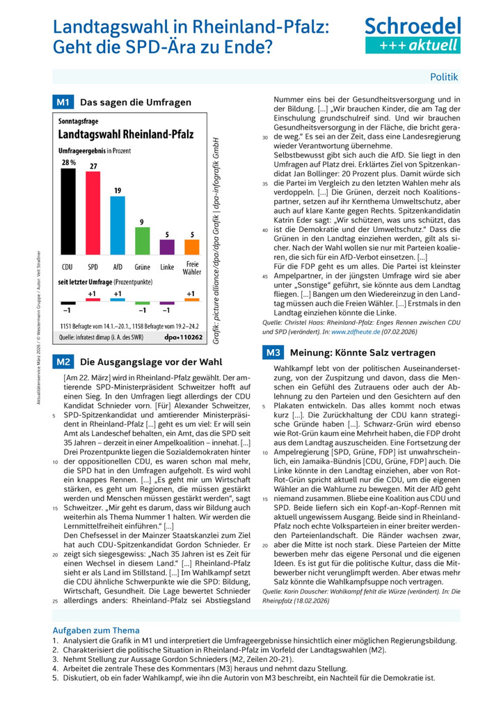 Dieses Arbeitsblatt informiert über die politische Ausgangslage vor der Landtagswahl in Rheinland-Pfalz am 22. März und kann als Auftakt zu einer vertiefenden Auseinandersetzung mit den Positionen der antretenden Parteien dienen.
