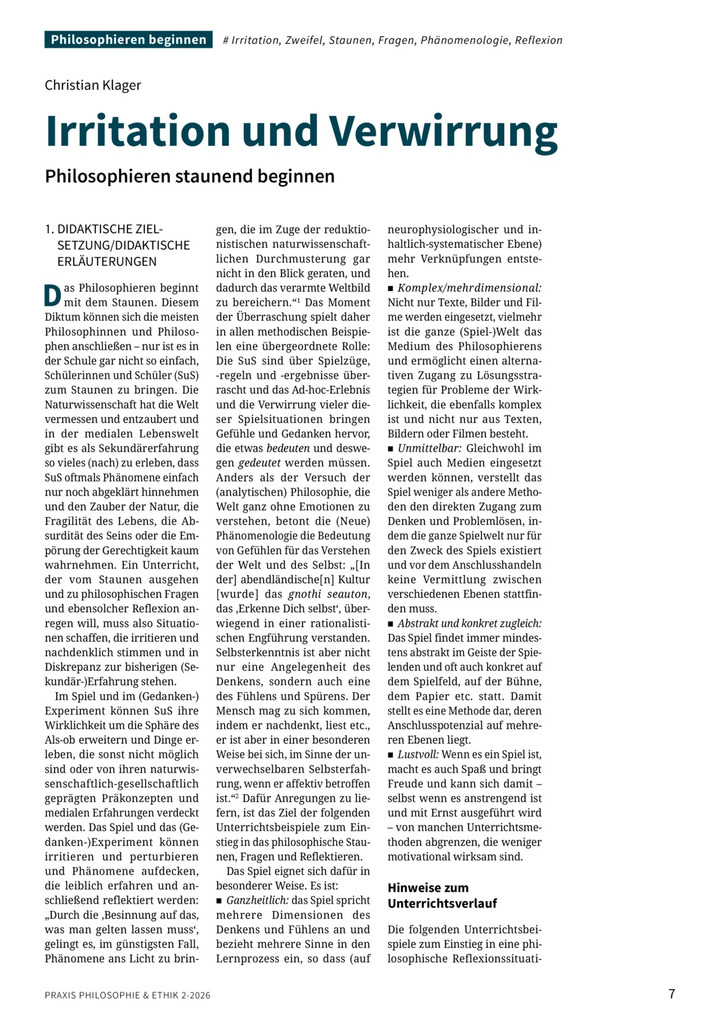 | Schlagworte | Zweifel, Fragen, Staunen, Phänomenologie, Irritation, Reflexion |
