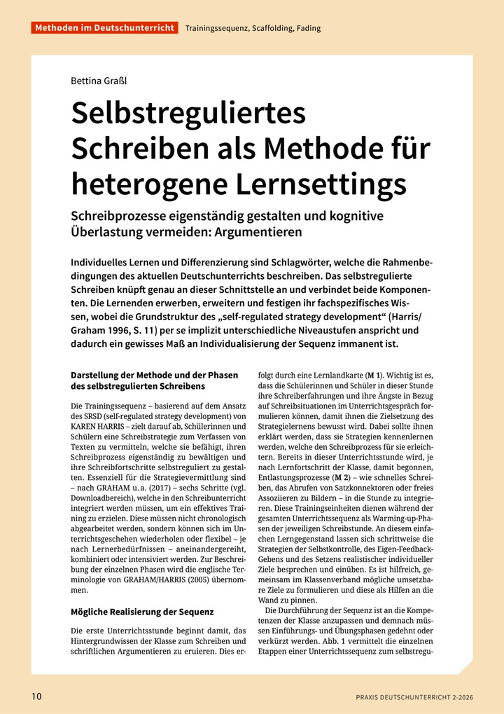 Selbstreguliertes Schreiben als Methode für heterogene Lernsettings Schreibprozesse eigenständig gestalten und kognitive Überlastung vermeiden: Argumentieren