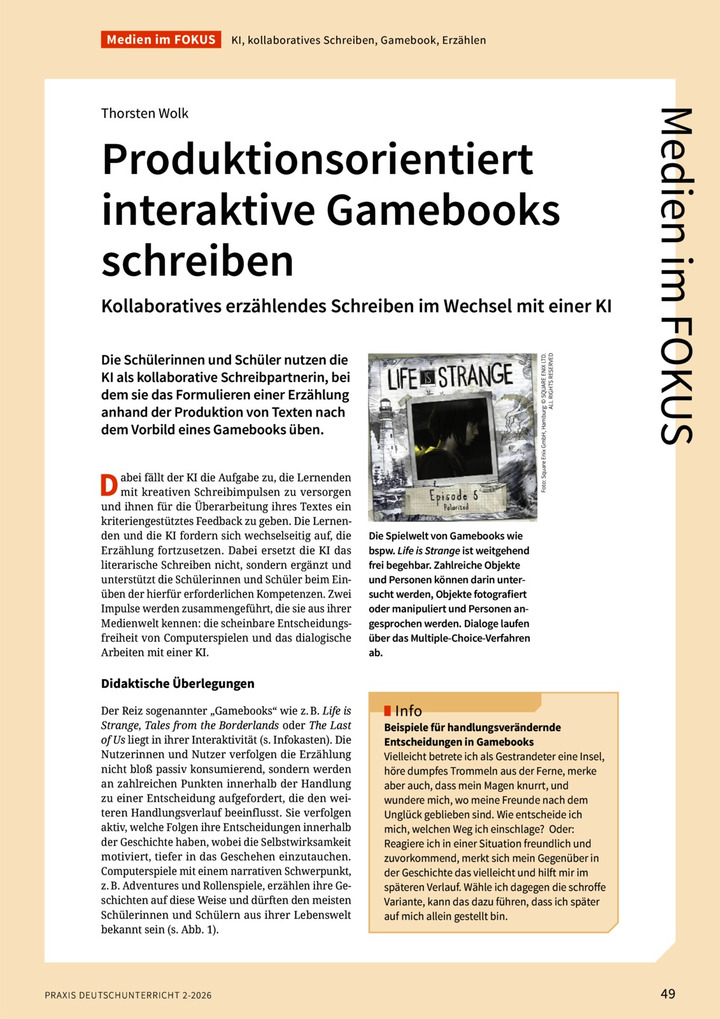 Produktionsorientiert interaktive Gamebooks schreiben Kollaboratives erzählendes Schreiben im Wechsel mit einer KI