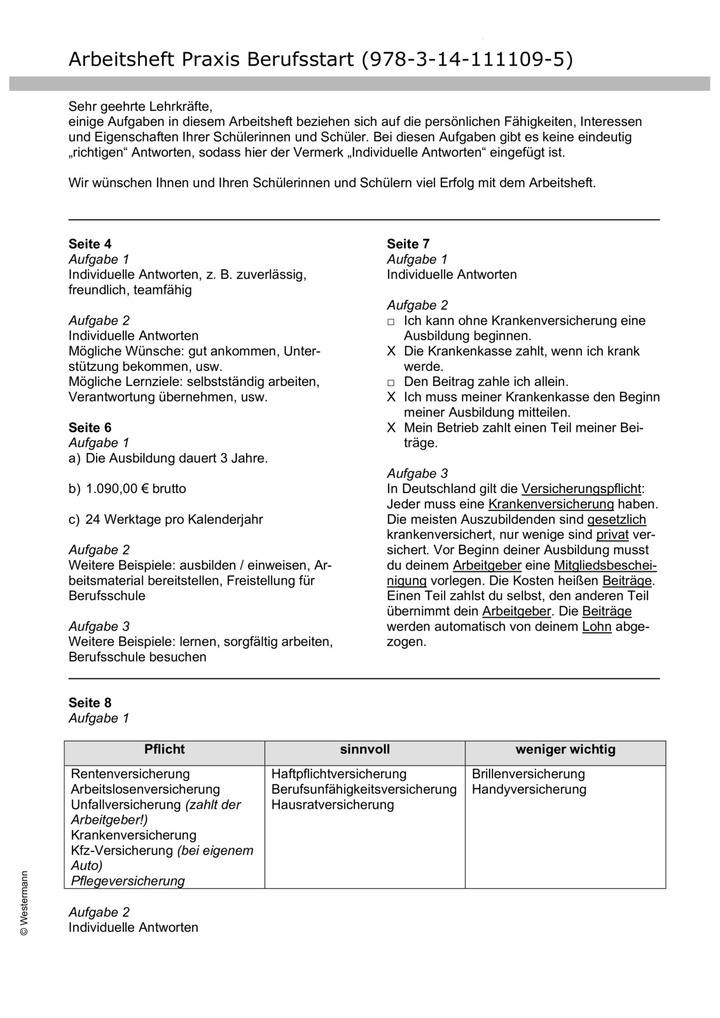 Lösungen zum Arbeitsheft Praxis Berufsstart
