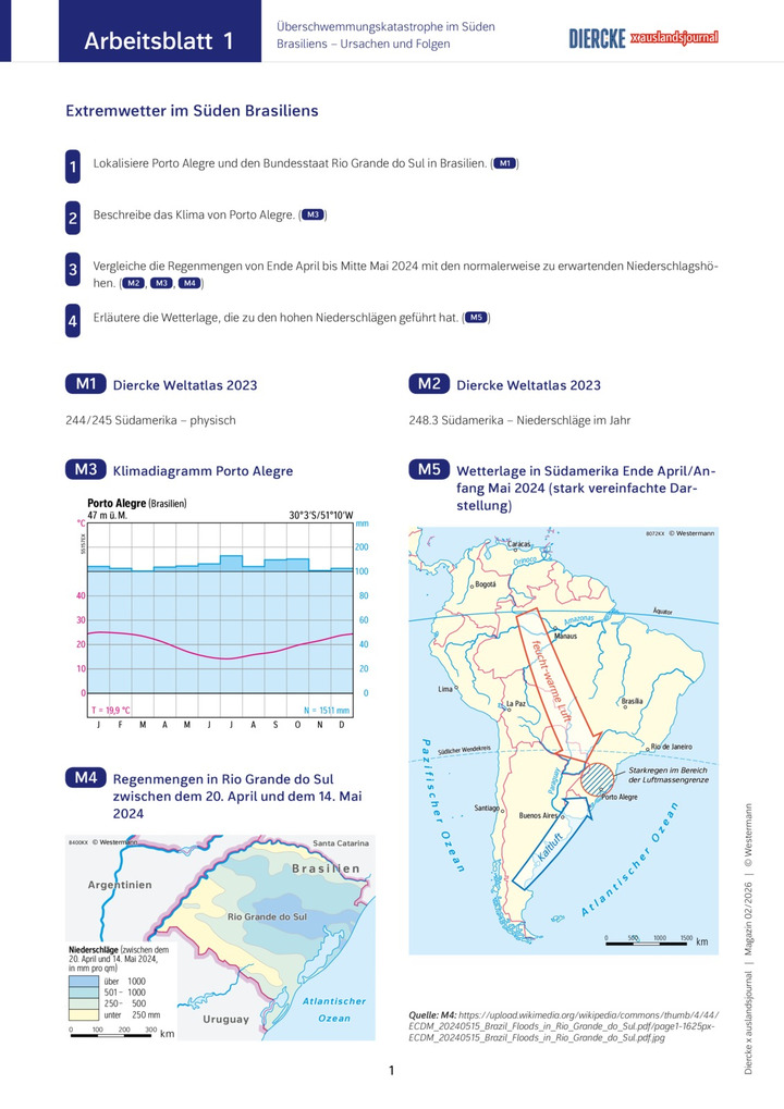 Arbeitsmaterialien: Überschwemmungskatastrophe im Süden Brasiliens - Ursachen und Folgen Diercke x auslandsjournal - Einheit 9