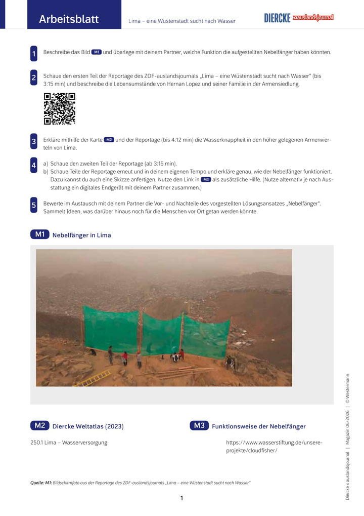 Arbeitsmaterialien: Lima - eine Wüstenstadt sucht nach Wasser Diercke x auslandsjournal - Einheit 10